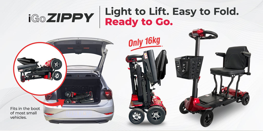 The IGO Zippy is a lightweight, foldable mobility scooter designed for travel, home use, and everyday convenience. Weighing in at just 16.85 kg (excluding battery and armrests), the Zippy delivers on both comfort and portability—making it perfect for car boots, airplane cabins, and apartment living.
