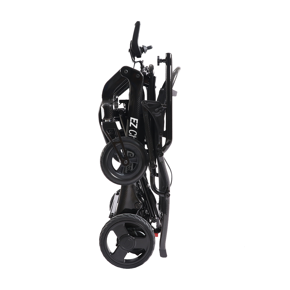 Discover the pinnacle of sophisticated mobility with the EZchair Carbon, a premium electric wheelchair crafted from high-quality carbon fibre. Designed for those who value both elegance and functionality, this wheelchair boasts an ultralight structure, weighing merely 17kg without its batteries. Its innovative easy-folding mechanism ensures it is perfectly suited for regular transportation, effortlessly fitting into car boots, accommodating airline travel requirements, or navigating public transportation systems.
